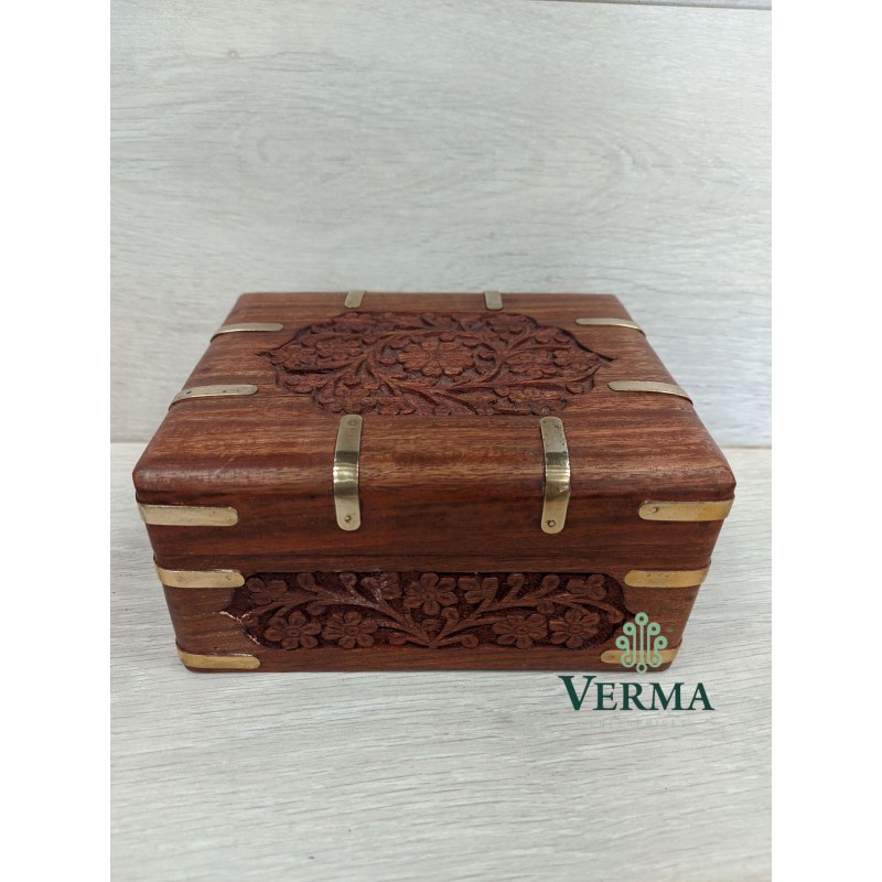 BOX CARVED/ BRASS INLAID 6.5" X 5.5"X3"