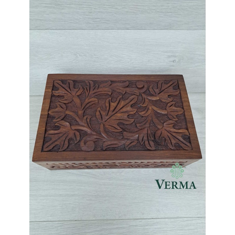 Sheesham Box Leaf Carved 13.5" x 8.5" WITH LATCH