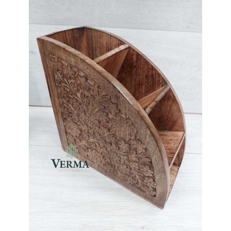 Mango Wood Carved Remote Holder 8"x8"x4"